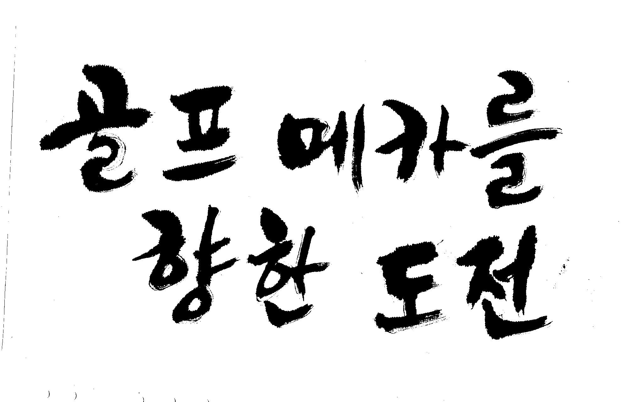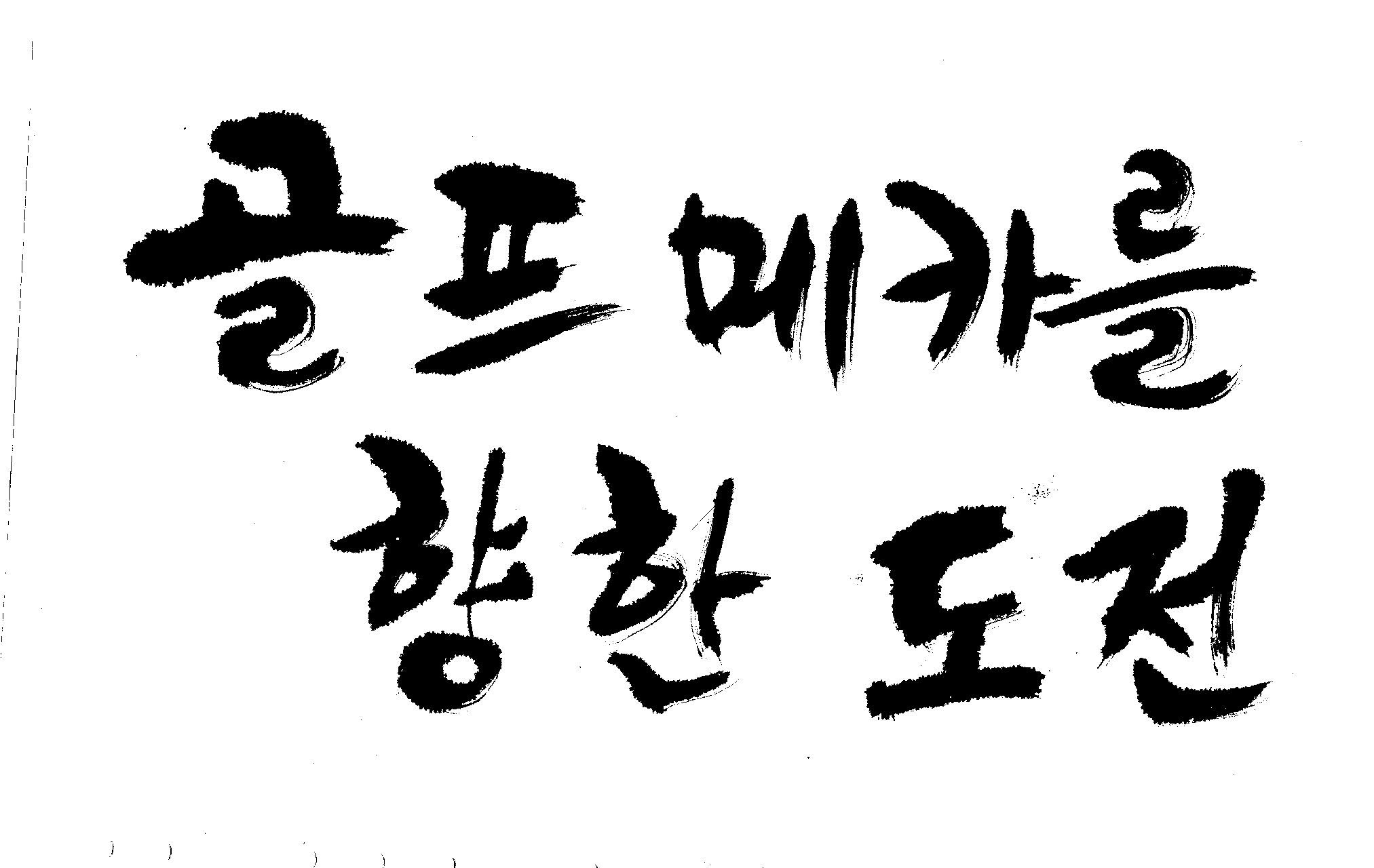 우경의 행복한 캘리세상-골프메카 김철호 일반 1 8497 2009.07.18 10:27 > > > > > 리듬감을 최대한 살리고 ㅡ 스포츠의 운동감과 밝음 > > 기교섞인 획을 배제--일반적인 느낌 > > 굵기변화를 통하여 도전 낱말을 강조 > > 스타일은 비슷하지만 ...한 사람이 썼으니까 ㅎㅎㅎ > > 서로 다른 글꼴을 올린 것은... 비교하여 보시고... > > 편집자에게 선택권을 주는 것입니다 > > >