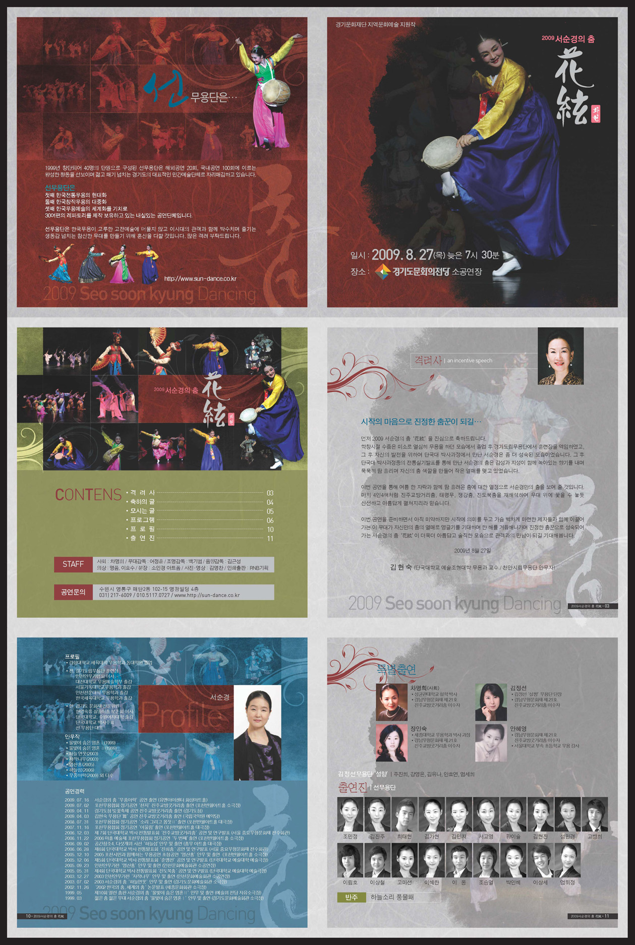 색감이 공연특성(한국전통)과 어울리네요. 표지의 레드는 선생님의 한복-노랑.파랑과 매치되네요. 이레저레 신경쓰신게 보입니다. 잘보고 가요.